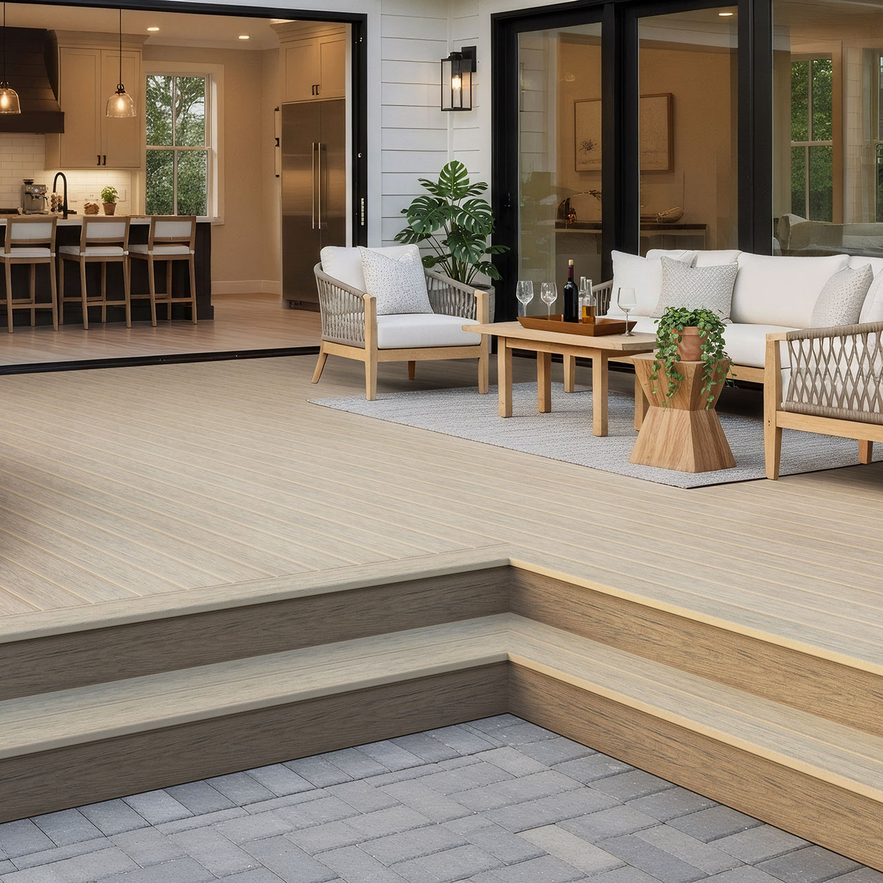 Armadillo Decking brings unmatched durability and style to your outdoor space. Known for its fully encapsulating, fade-resistant cap, Armadillo composite decking offers superior protection against stains, fading, and scratching. This robust construction ensures your deck maintains its vibrant color and pristine appearance with minimal maintenance, allowing you more time to enjoy your deck and less time on upkeep. Available in a wide array of rich colors and natural-looking wood grain patterns, Armadillo provides a beautiful and long-lasting foundation for any deck design.